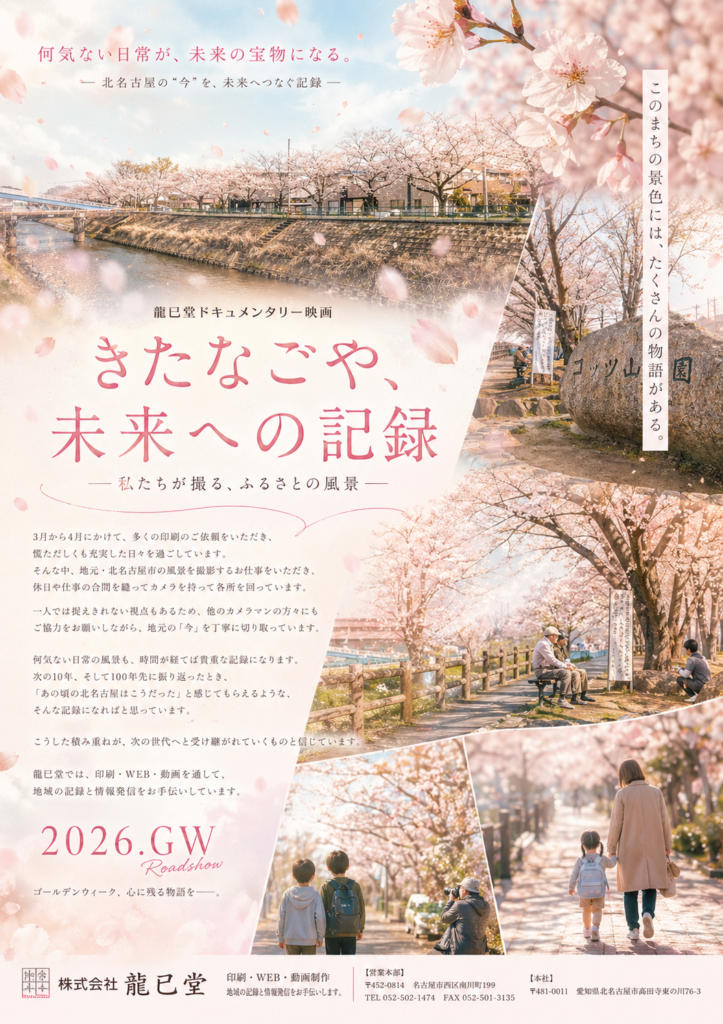 このたび、北名古屋市の2025年度版「市勢要覧」作成をお手伝いしました。 北名古屋市役所ご担当者さまのチームが作成されたデザインと原稿を基に、龍巳堂でDTPから印刷まで担当しました。 2〜3ページの見開きに使用している俯 …